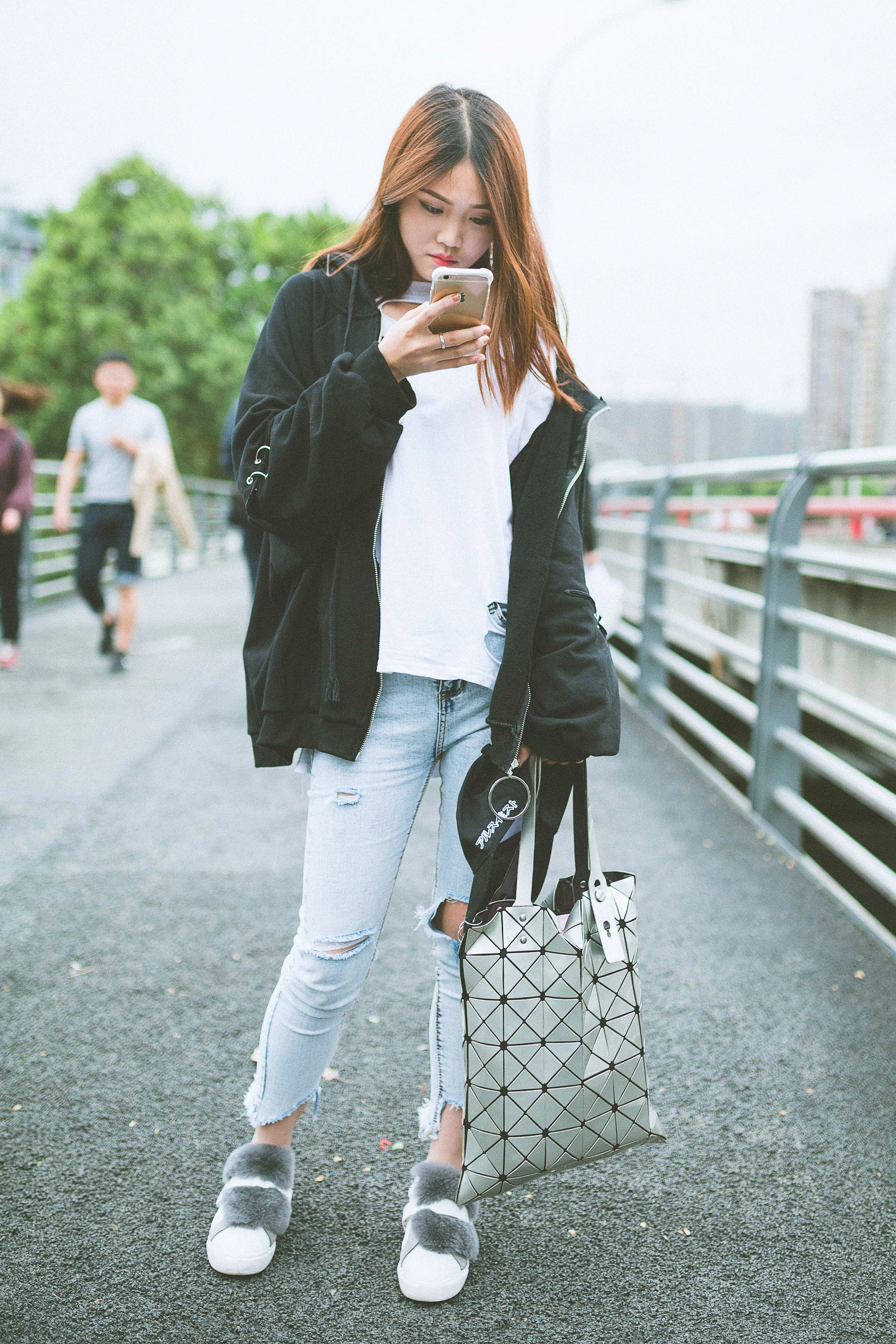 Description: Outdoor Portrait Of Young Beautiful Fashionable Playful Chinese